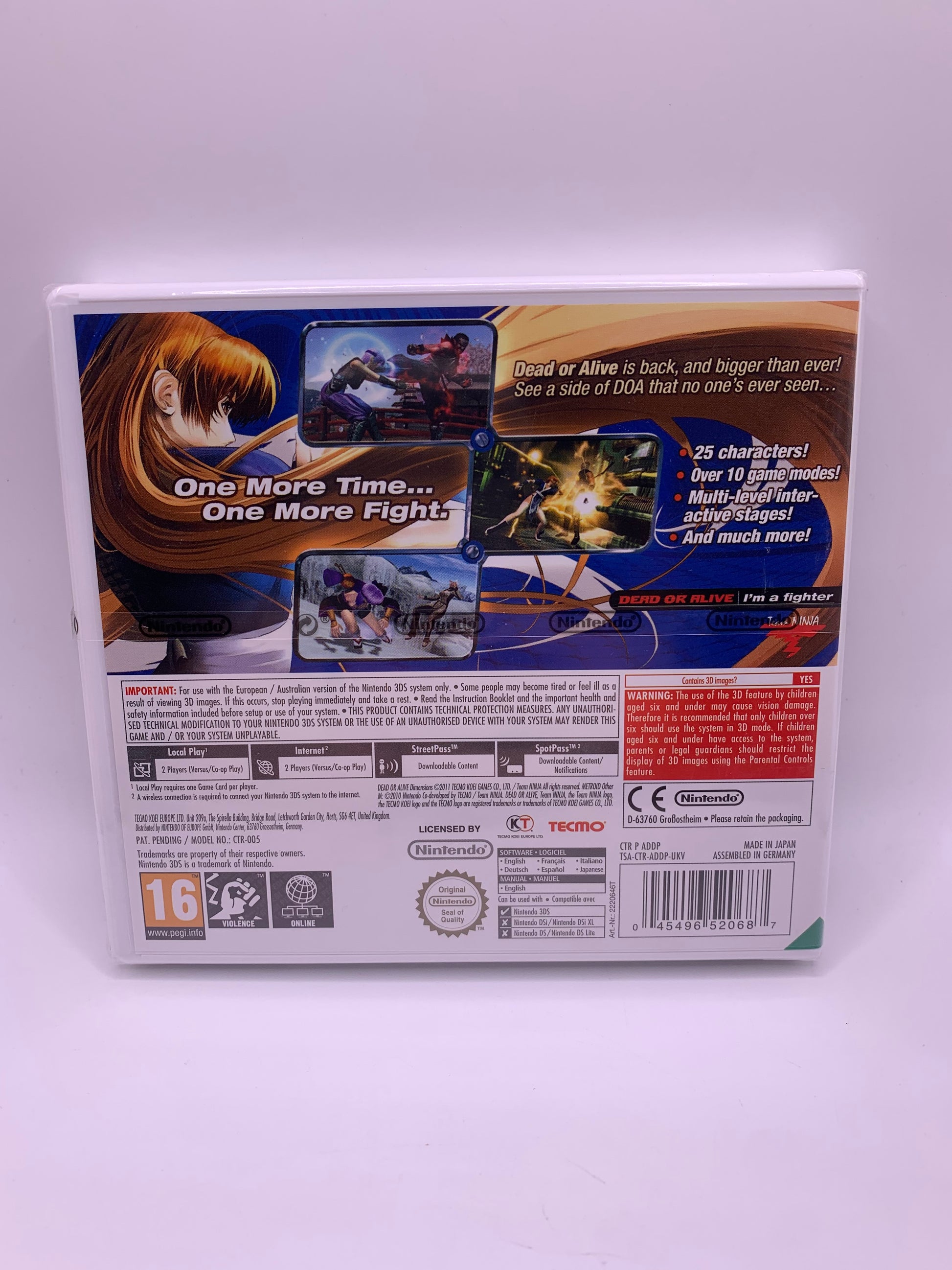 Ervaar de intense gevechten van Dead or Alive Dimensions voor de Nintendo 3DS. Vecht met bekende personages uit de serie in snelle, tactische gevechten. Ontdek het verhaal van de Dead or Alive-saga en speel verschillende modi vrij terwijl je je vechttechnieken perfectioneert.