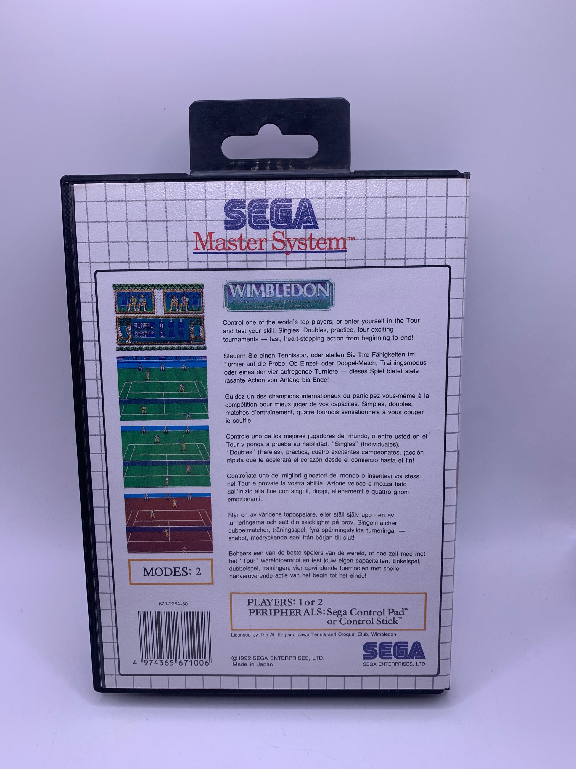 Speel professionele tennistoernooien in Wimbledon op de Sega Master System. Kies je speler en neem het op tegen uitdagende tegenstanders op iconische tennisbanen.
